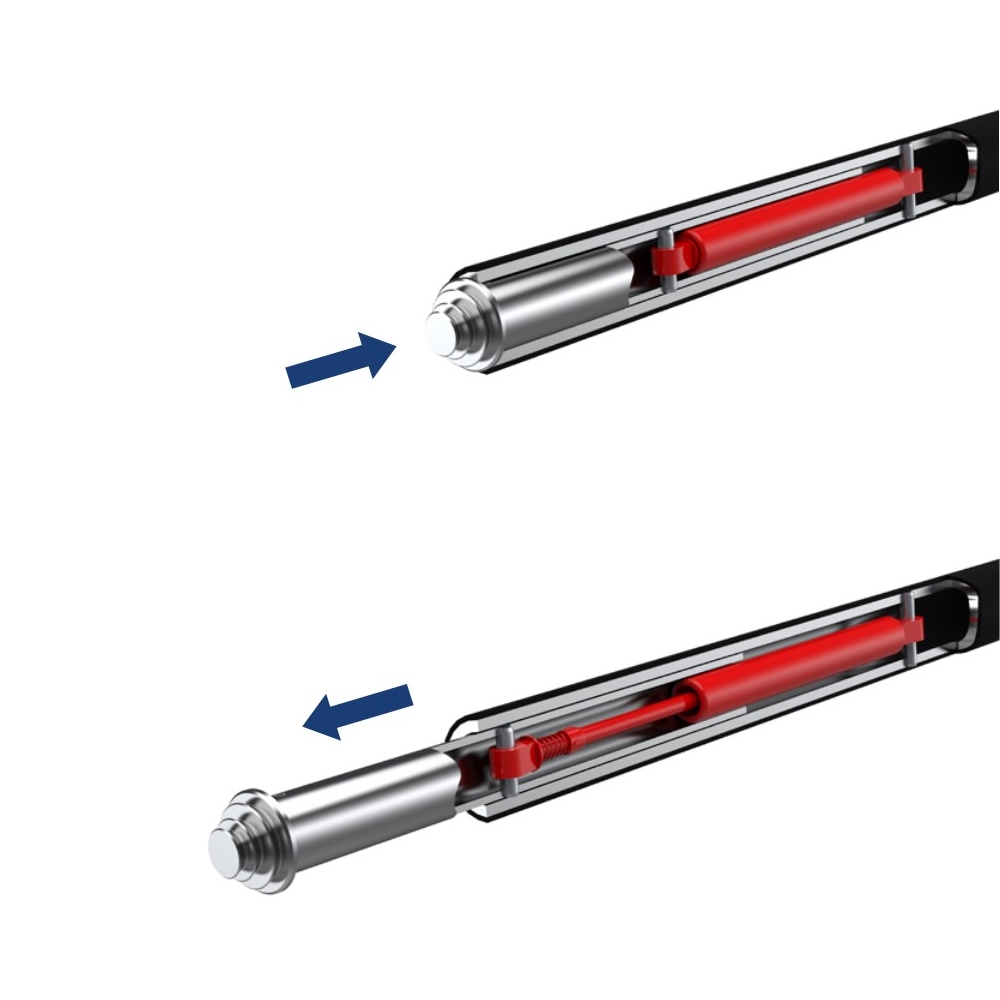 - Der PEN-BEAM wird durch kurzen Druck auf das Teleskoprohr entriegelt.
