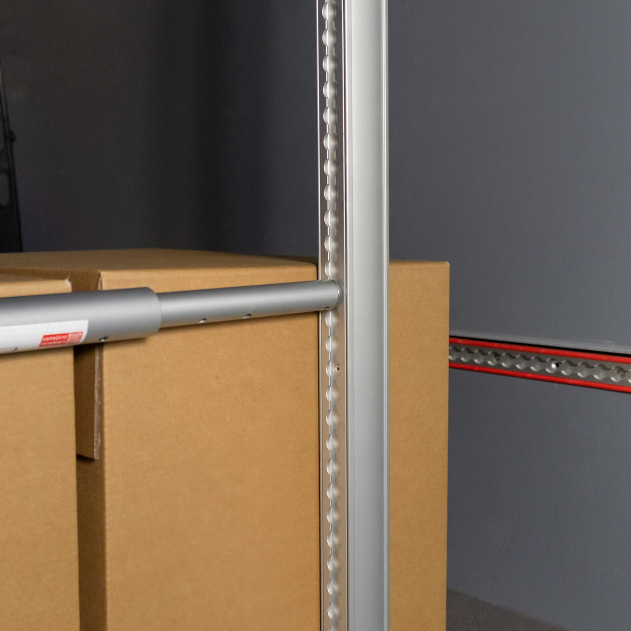 Dank der Verdrehsicherung zur Bodenschiene bleibt die Sperrstange auch bei dynamischen Belastungen sicher in Position.